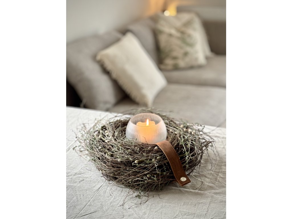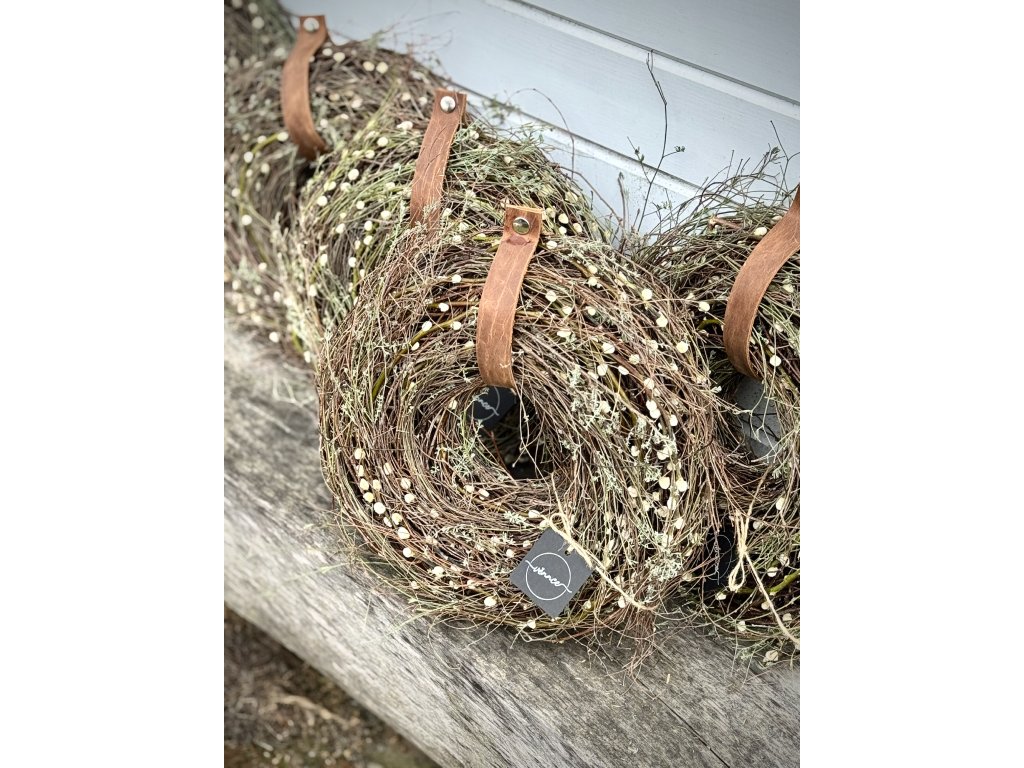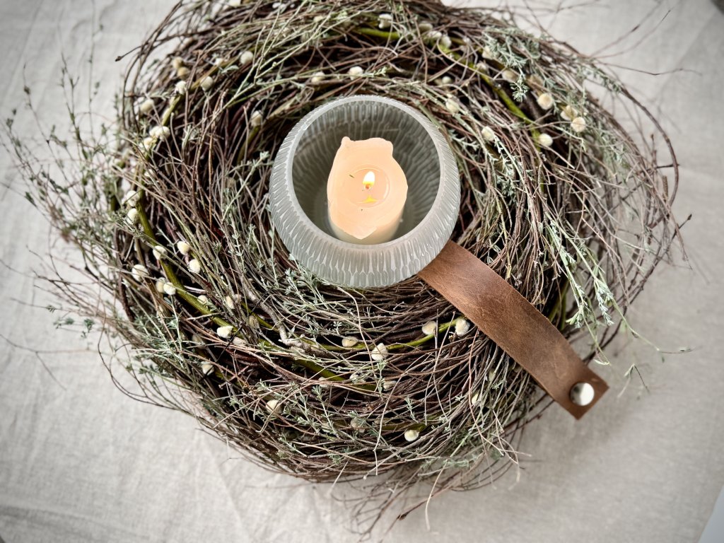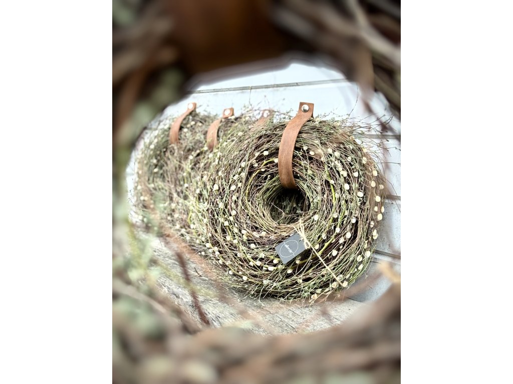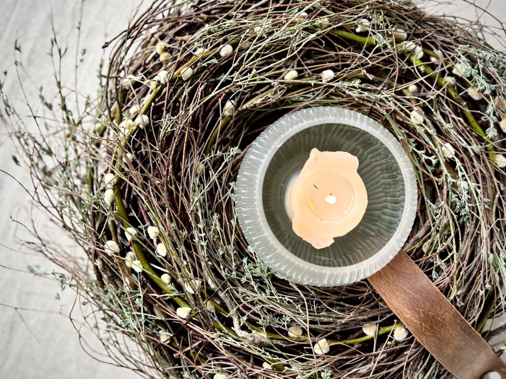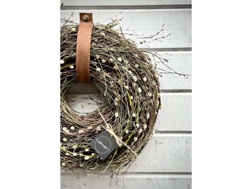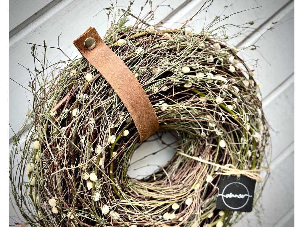 Nespoutaný jarní věneček vázaný z březových proutků, kočiček a špetky divokého tymiánu. Věneček působí přirozeně, lehce a nadčasově. V této velikosti (cca 35 cm) doporučuji především na stůl, ale můžete si jej i zavěsit. Použité materiály jsou trvanlivé, věnec si zachová svou podobu po dlouhou dobu. Každý kus je originál.