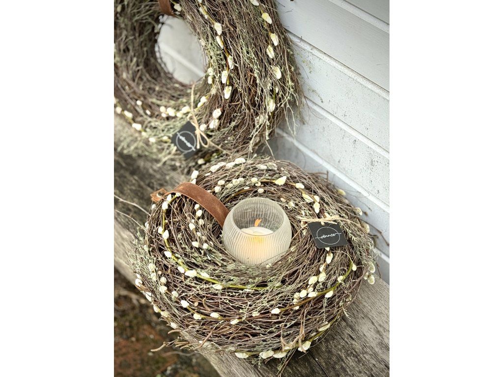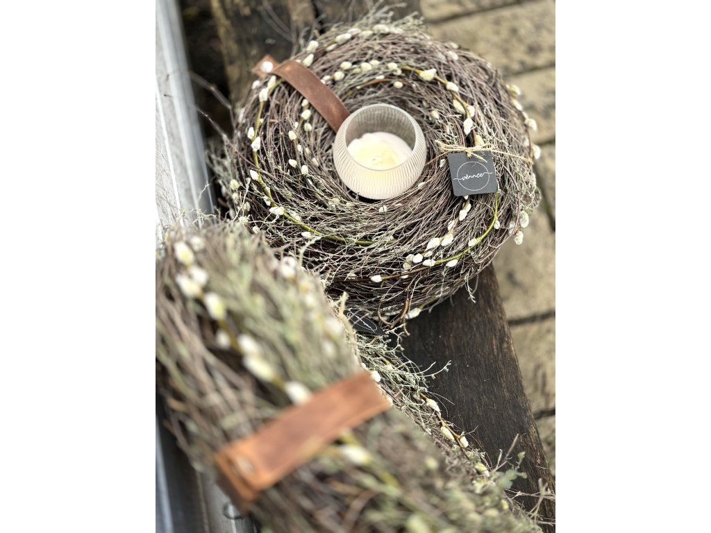 Nespoutaný jarní věneček vázaný z březových proutků, kočiček a špetky divokého tymiánu. Věneček působí přirozeně, lehce a nadčasově. Ve velikosti cca 35 cm doporučuji především na stůl, velikost 45 cm k zavěšení. Použité materiály jsou trvanlivé, věnec si zachová svou podobu po dlouhou dobu. Každý kus je originál.