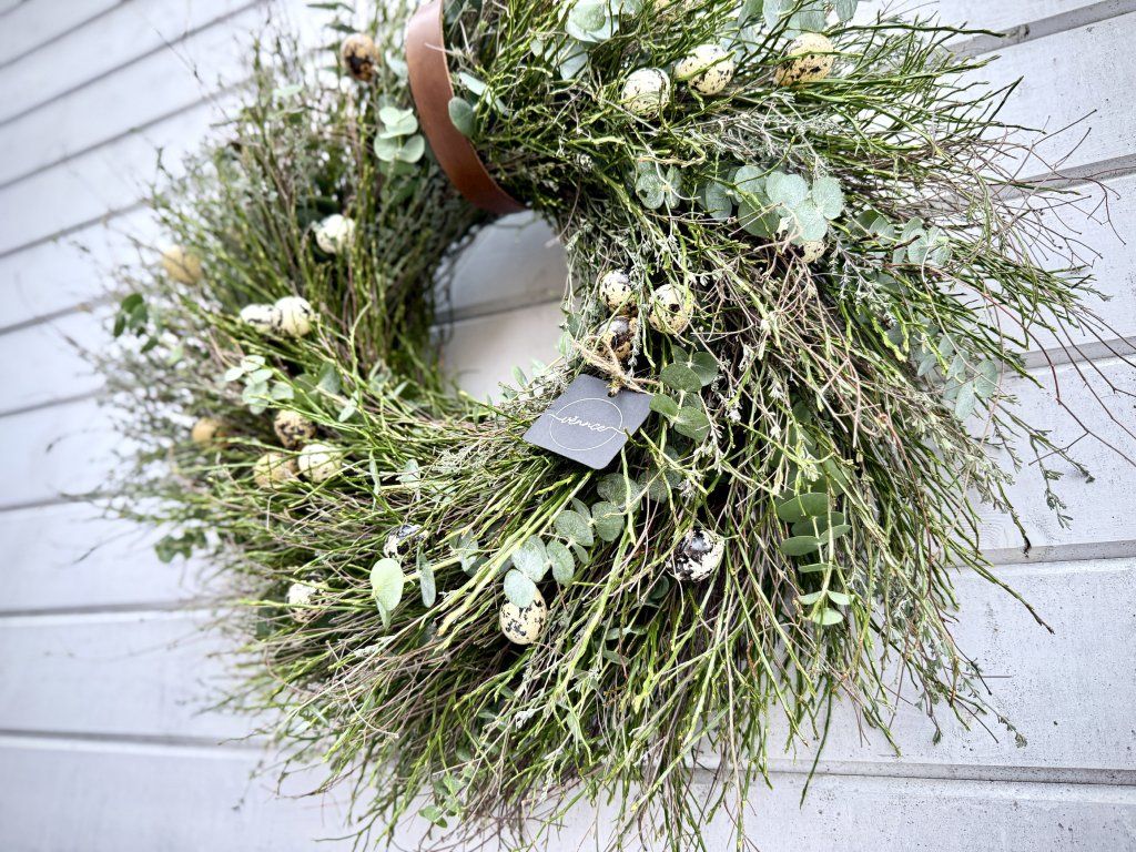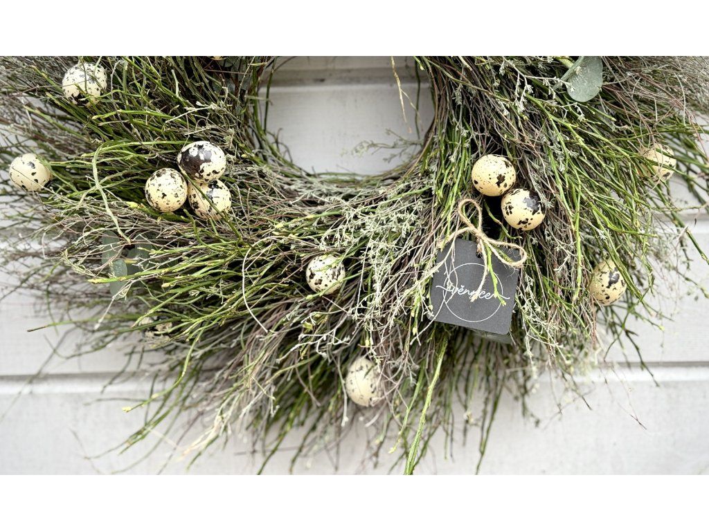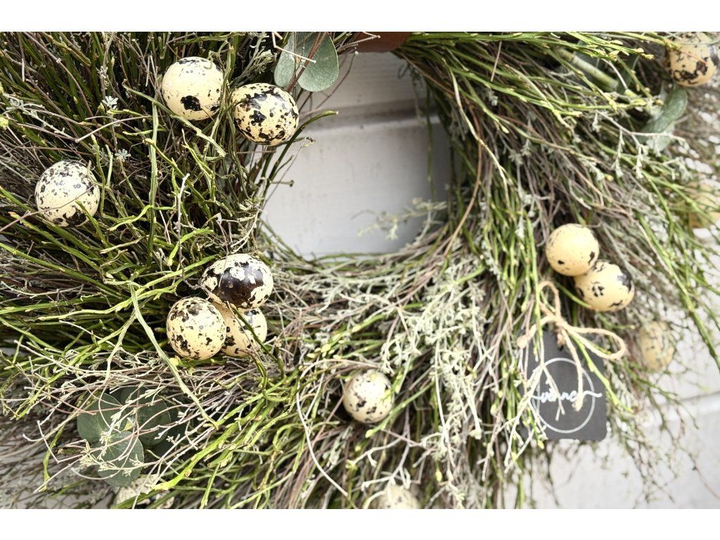 Jarní věnec s křepelčími vajíčky