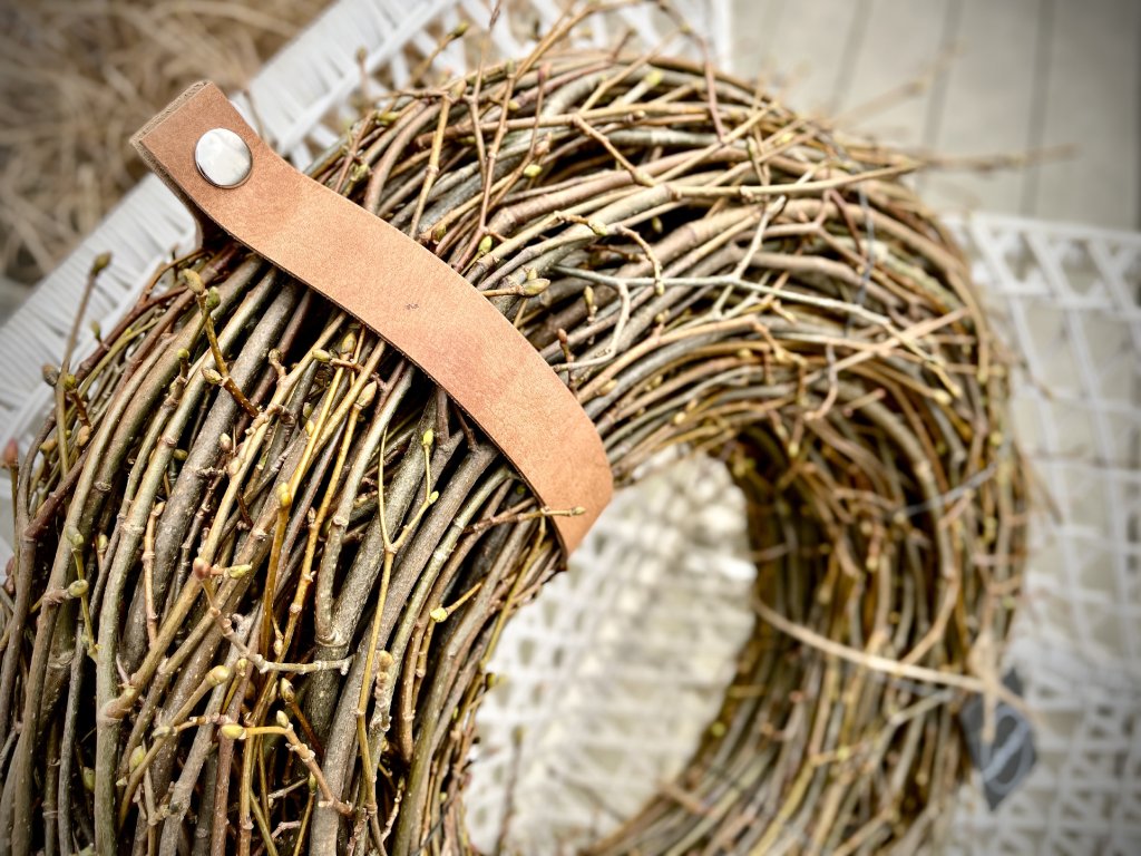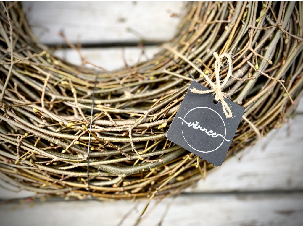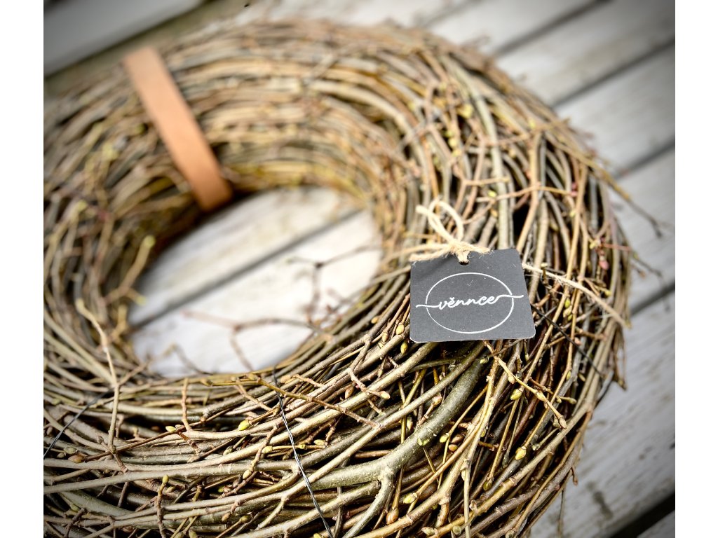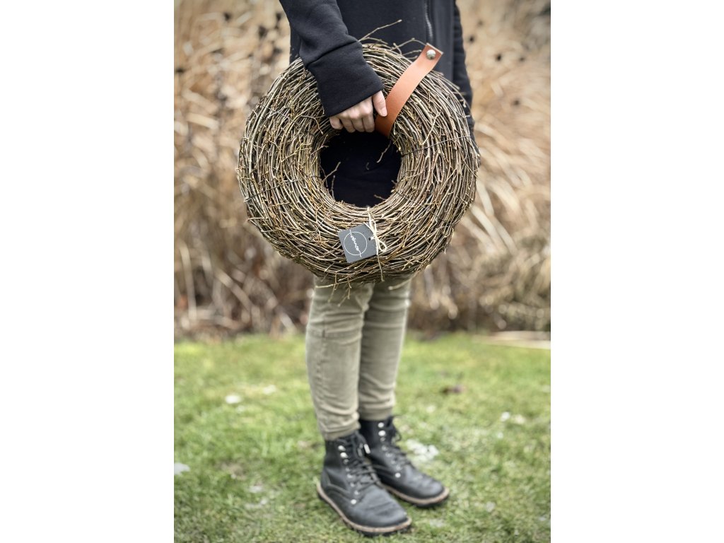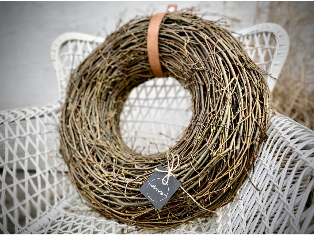 Přírodní věnec z větví, pečlivě ručně vázaný na slaměný korpus. Jeho jednoduchý vzhled podtrhuje kožený pásek – žádné zbytečné ozdoby, jen čistý minimalismus a přirozená krása materiálu. Věnec je ideální jako jarní dekorace, zároveň však díky nadčasovému vzhledu skvěle poslouží po celý rok. Vytvoří útulnou atmosféru na vstupních dveřích, na stěně či nad krbem a snadno se kombinuje s dalšími dekoracemi podle sezóny. Díky nadčasovému designu zapadne do moderního i venkovského prostoru.
