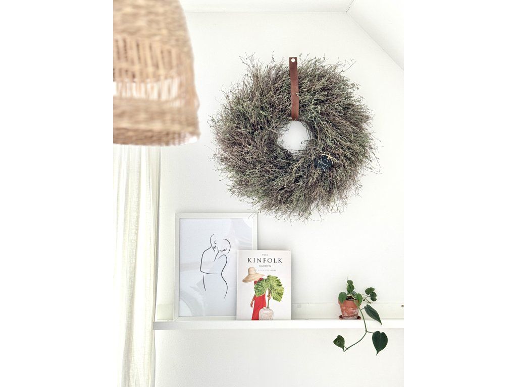 Rozcuchaný věnec z divokého tymiánu, krásná a trvanlivá dekorace do interiéru nebo krytého exteriéru. Věnec je ozdoben koženým páskem. Divoký tymián nemá intenzivní vůni jako tymián obecný (na vaření). Věnec vyrobím do 14 dnů od úhrady nebo dle dostupnosti materiálu u dodavatele. Kožený pásek bude v barvě dle aktuální skladové zásoby (béžová nebo hnědá).