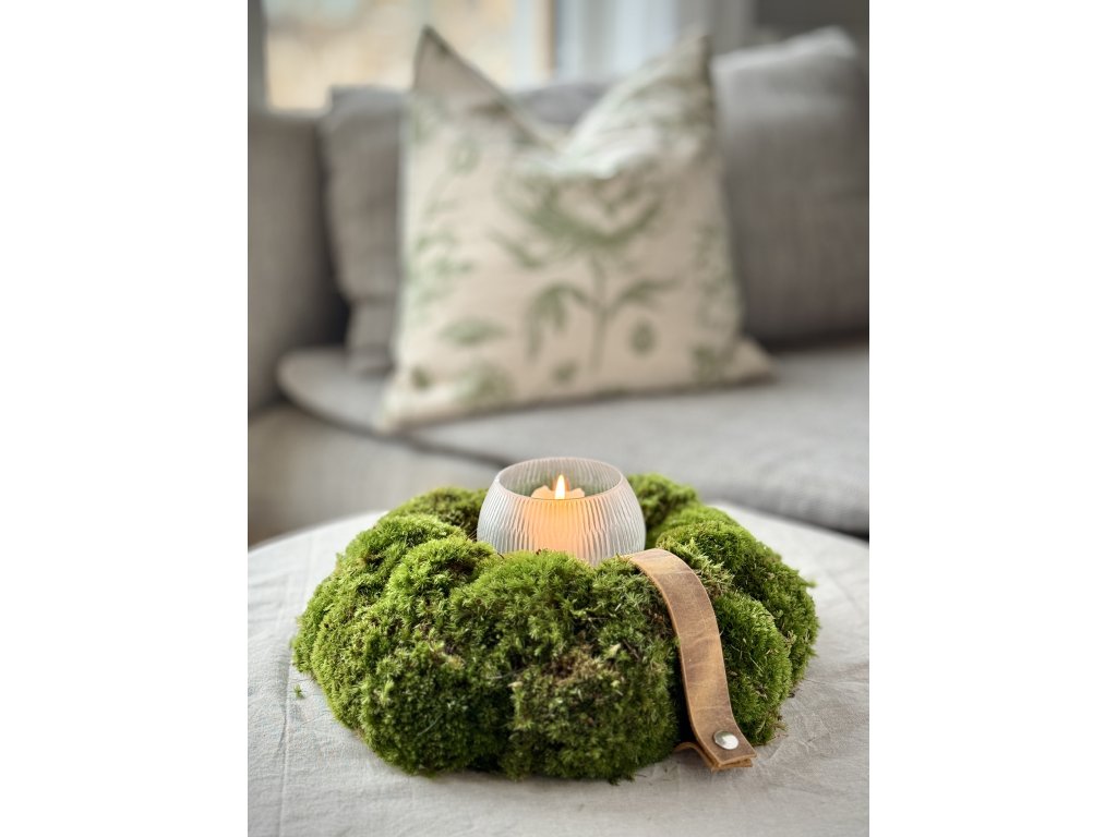 Tato ručně vyráběná dekorace z přírodního mechu působí svěže, jemně a dokonale doplní každý interiér. Díky autentické struktuře mechu vytváří příjemnou a harmonickou atmosféru. Mech může časem lehce zesvětlit, což je jeho přirozená vlastnost. Doporučuji věnec lehce rosit vodou nebo zafixovat bezbarvým lakem. Průměr věnce cca 35 cm. Věnec je připraven ihned k odeslání.